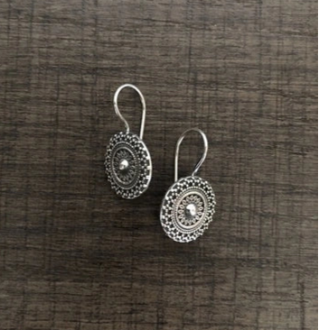 1.7 cm diameter carving work round loop earrings in pure 925 silver