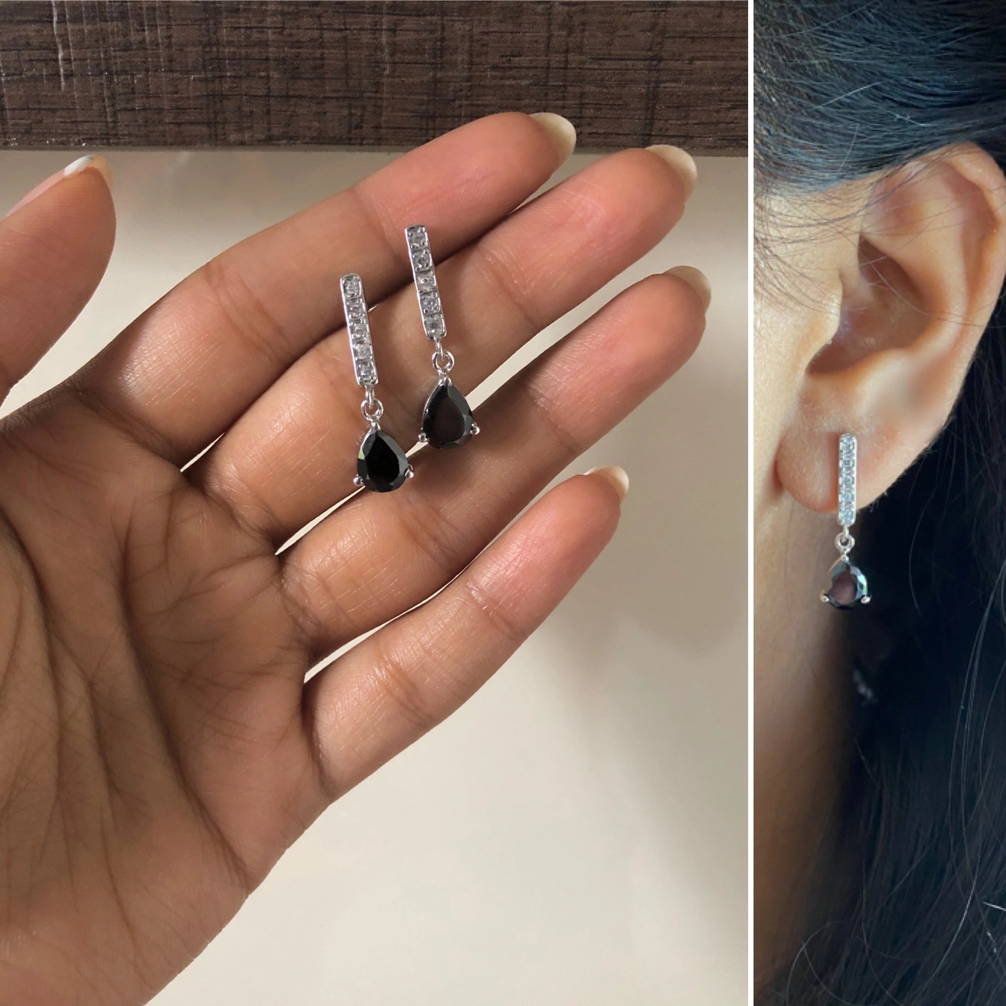 2.4 cm long five cz stone black onyx studs crafted in pure 925 silver