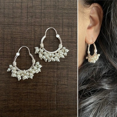 Elegant 2 cm balis with pearl clusters in pure 925 silver