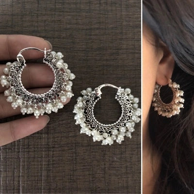 3 cm filigree balis with multiple pearls in pure 925 silver