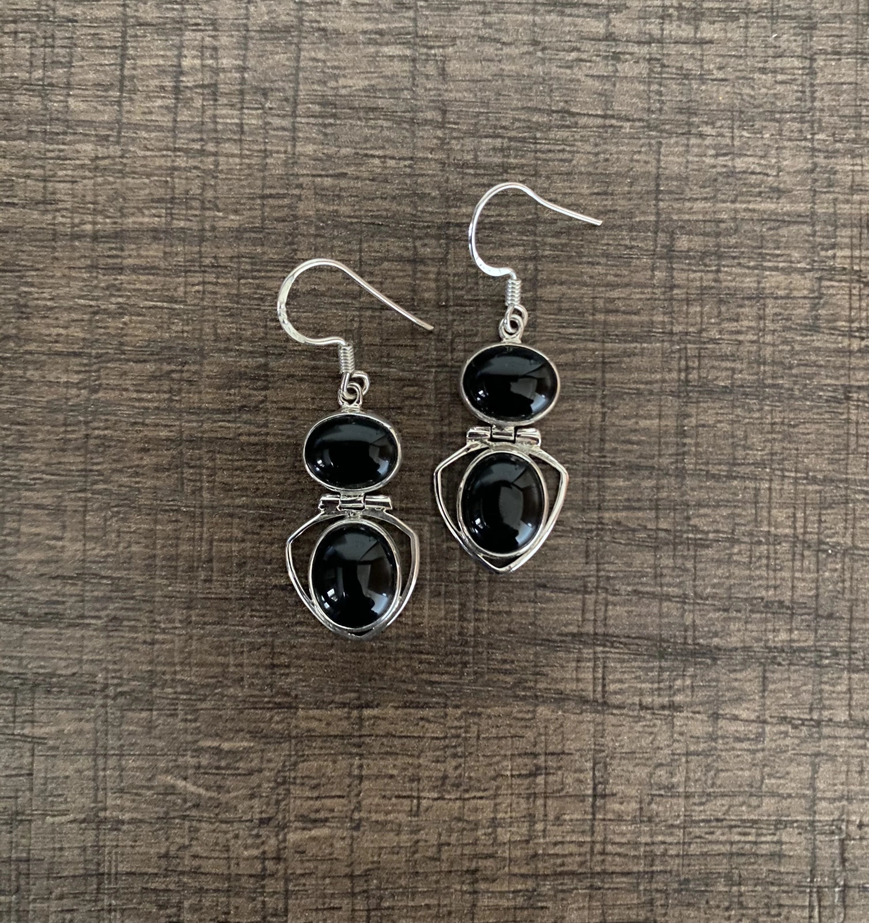Stunning 4.5 cm long black cabstone hangings in pure (925) silver