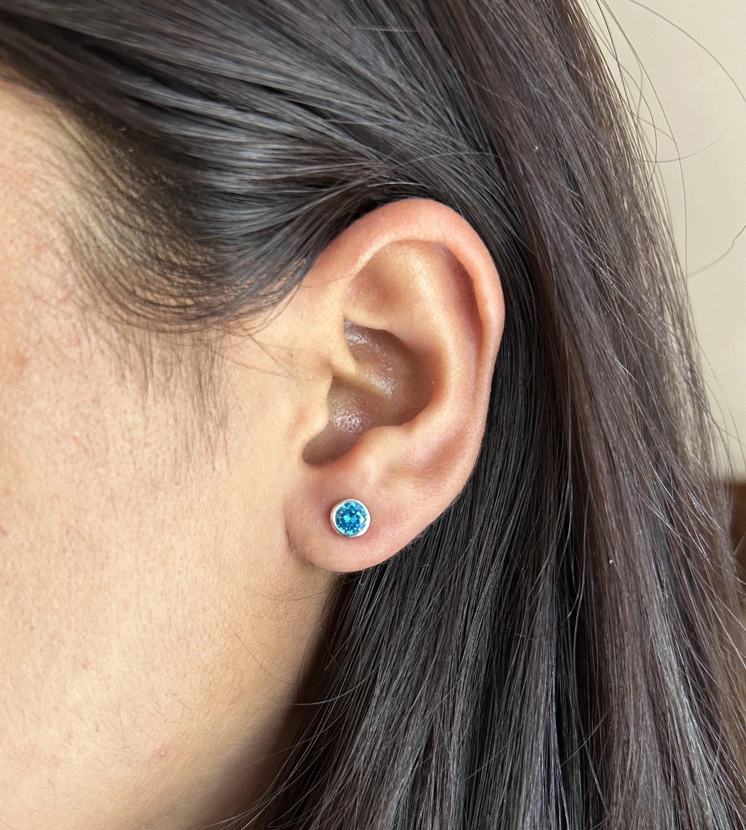 5mm light blue cz stone bezel setting studs in pure 925 silver