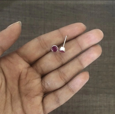 5mm pink onyx cut stone bezel setting studs in pure 925 silver