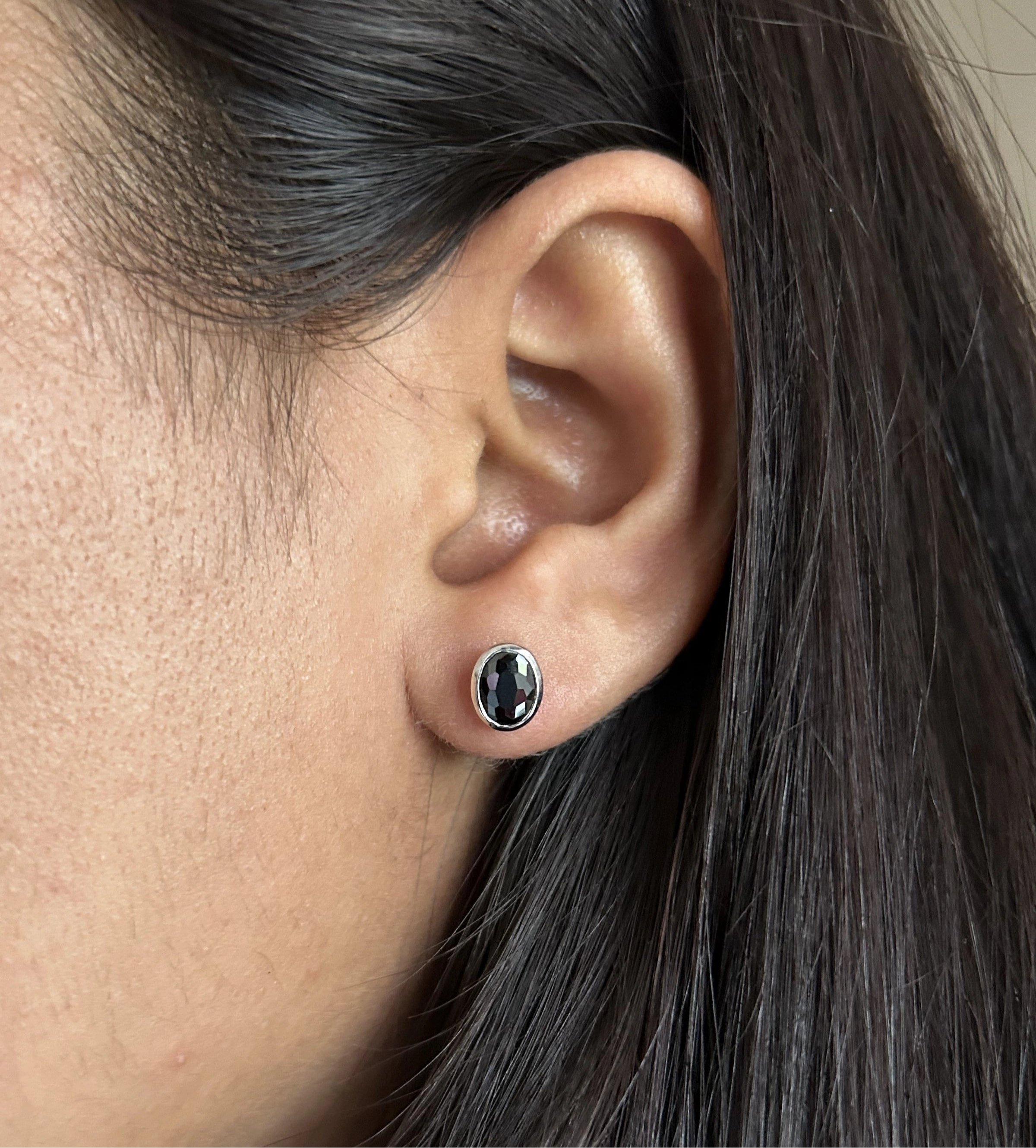 5x7mm oval black cz bezel setting studs in pure 925 silver