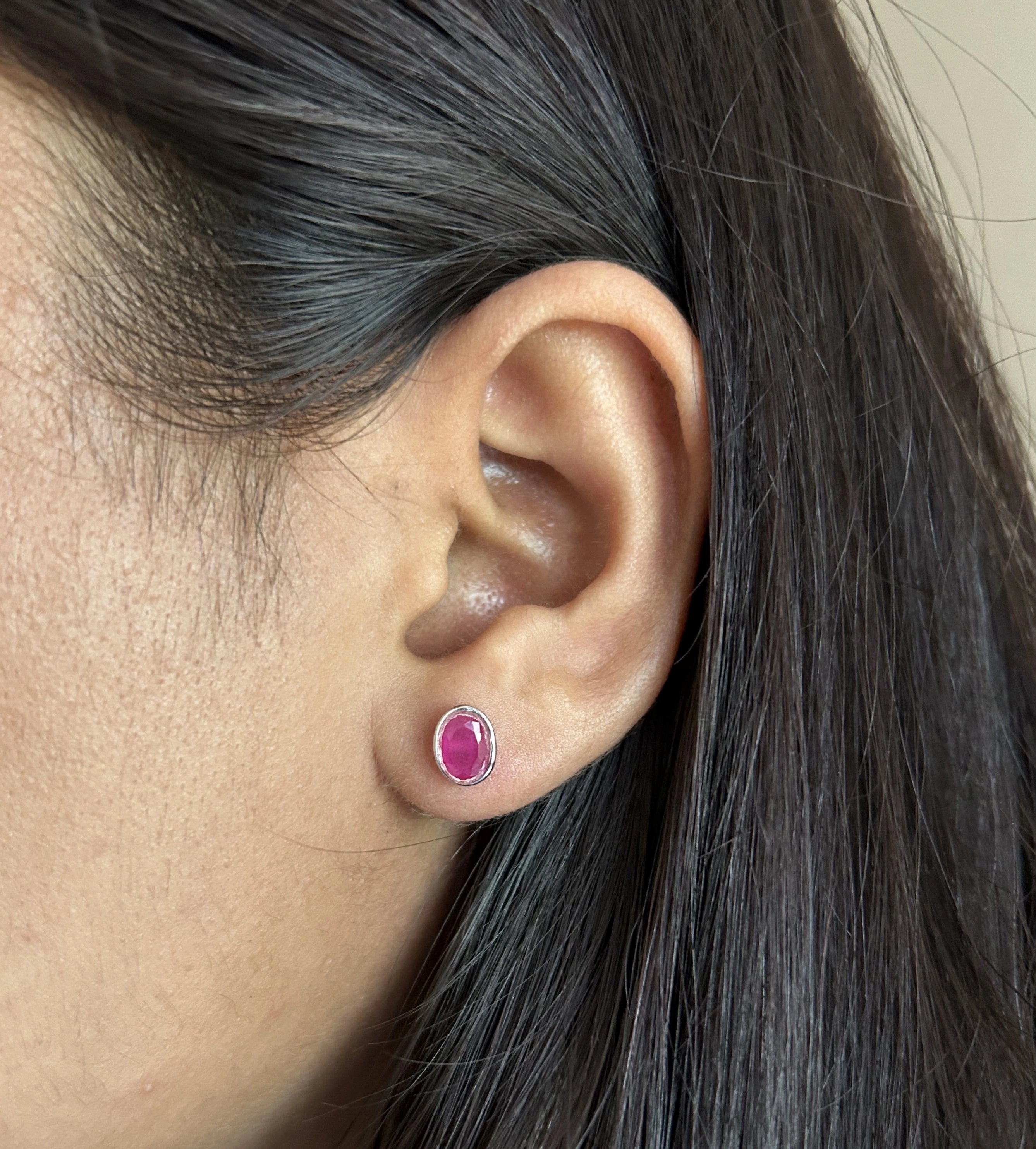 5x7mm oval ruby pink cz bezel setting studs in pure 925 silver