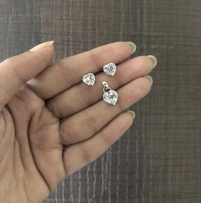 6mm cz stone earrings along with 7mm cz heart shape bezel setting pendant in pure 925 silver