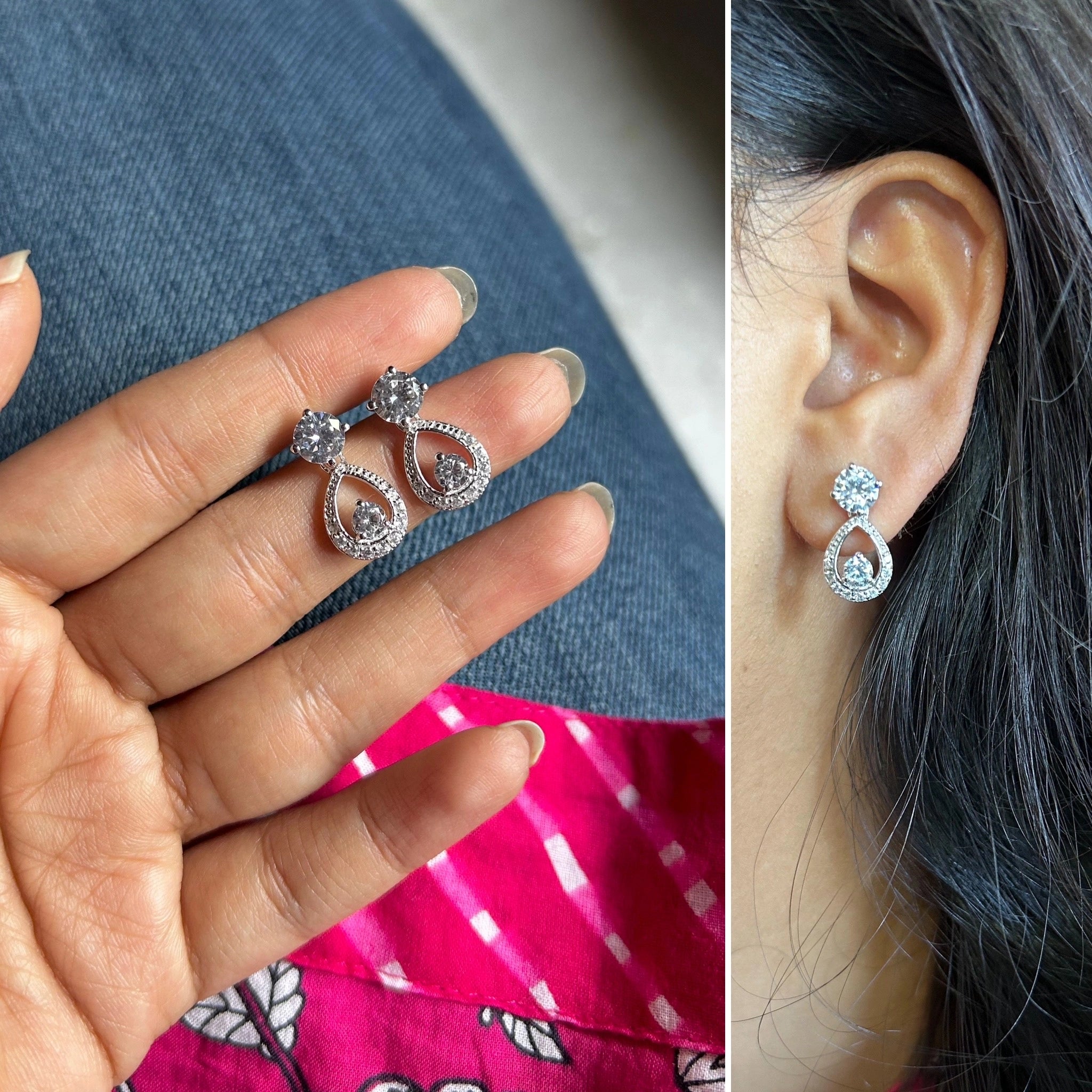Stunning 6mm cz studs with multi cz tear drop in pure 925 silver