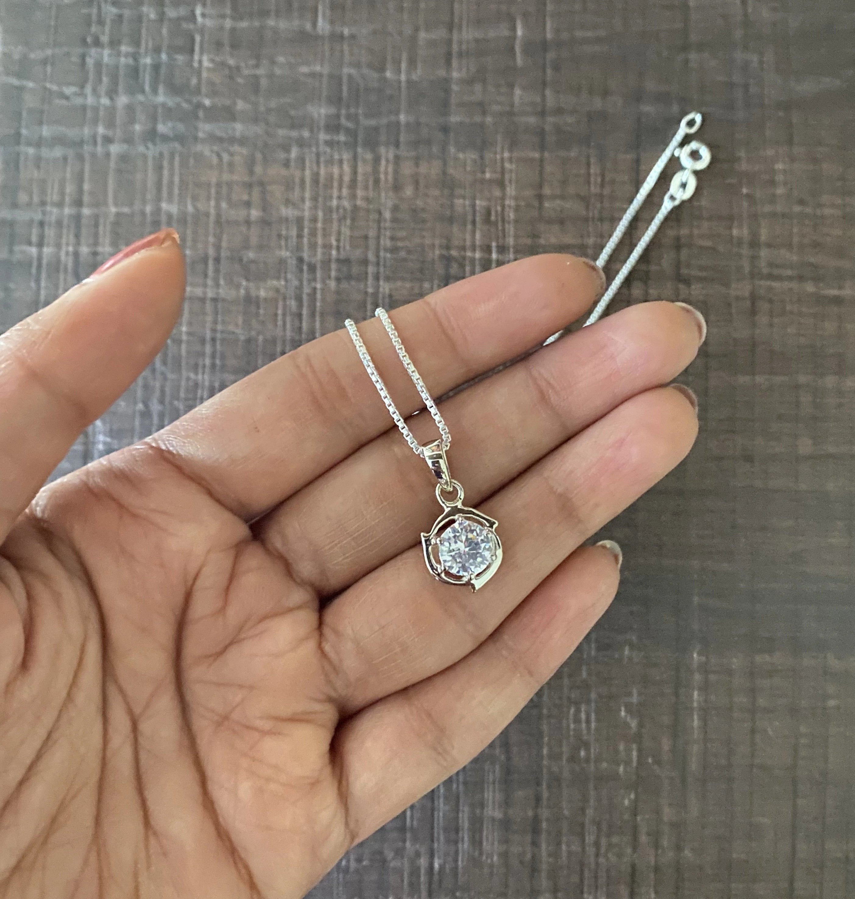 Sparkling 7mm cz stone curved border pendant and an 18’’ chain in pure (925) silver