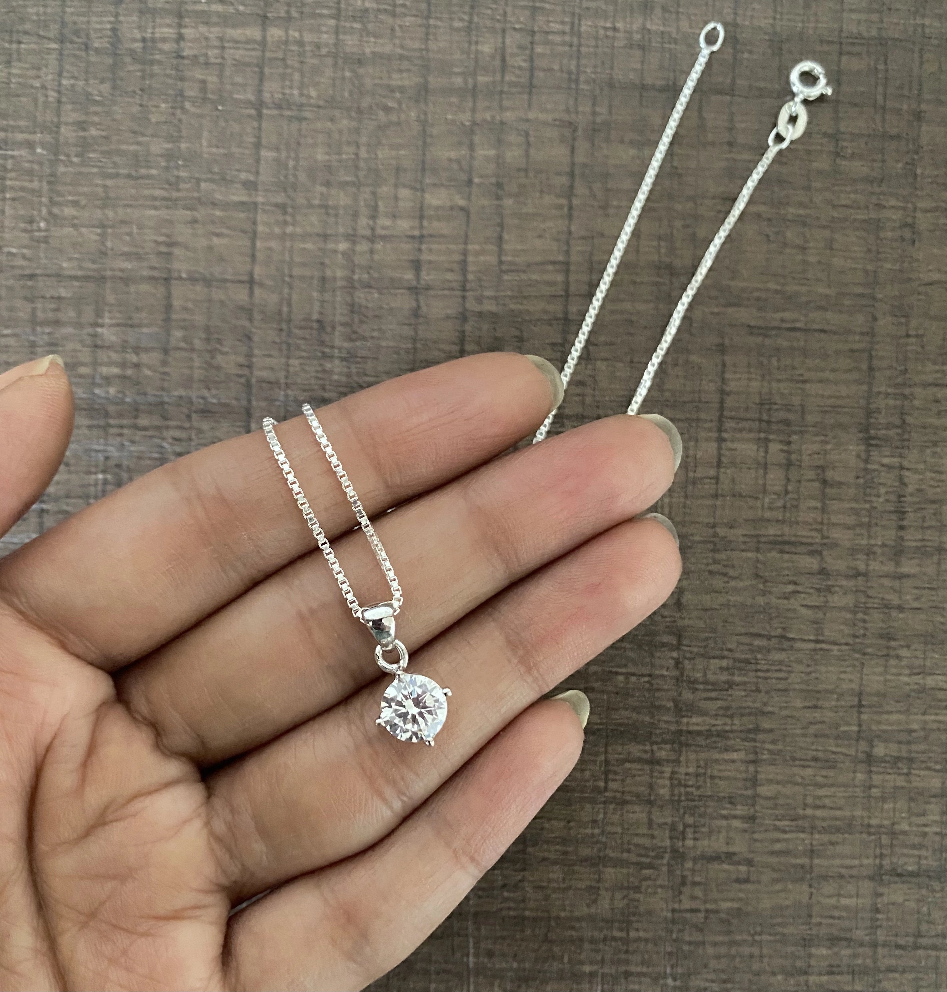 7mm cz stone four prong elevated grain setting pendant with an 18’’ chain in pure (925) silver