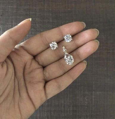 7mm cz stone studs with an inverted 'v' 8mm cz pendant set in pure 925 silver