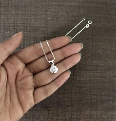 9mm diameter , bezel setting cz stone pendant with an 18'' chain in pure 925 silver