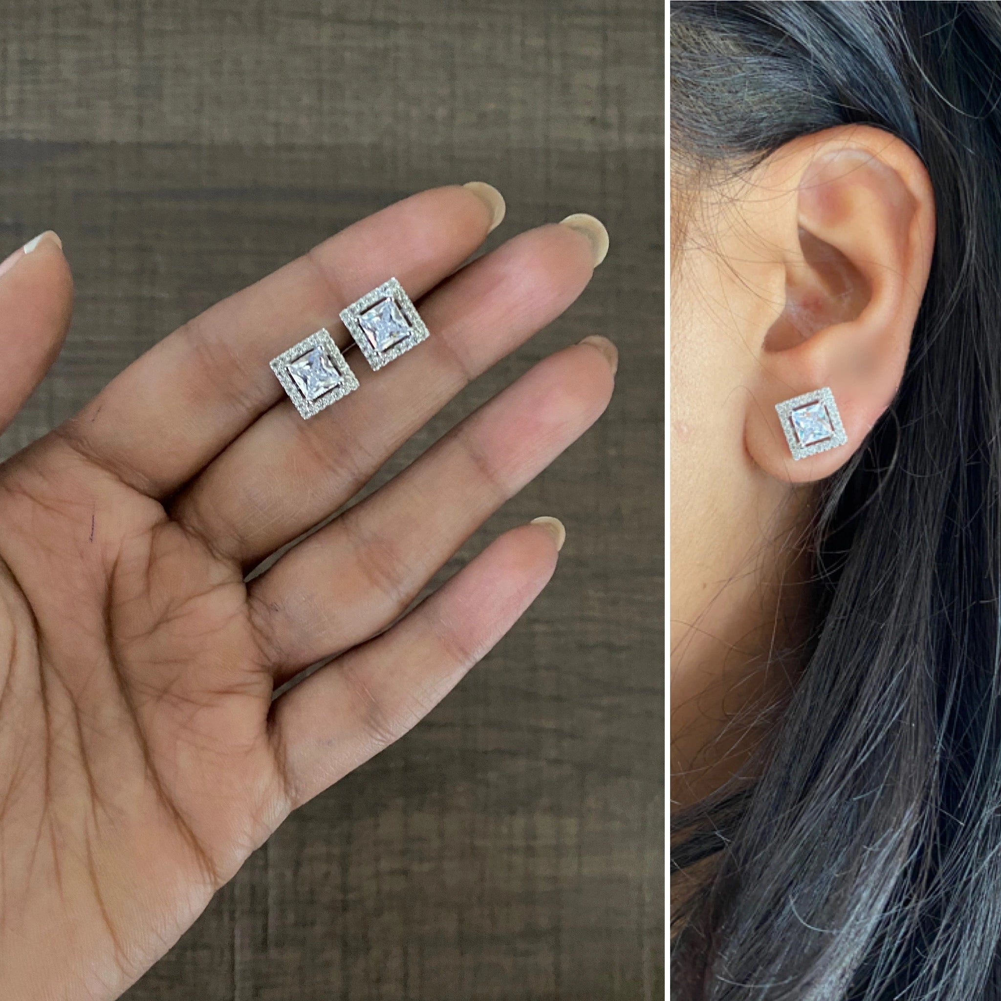 9mm multi cz stone solitaire square studs crafted in pure 925 silver