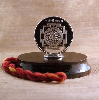 Auspicious Shree Yantra Pure 925 Silver Idol on a rosewood base