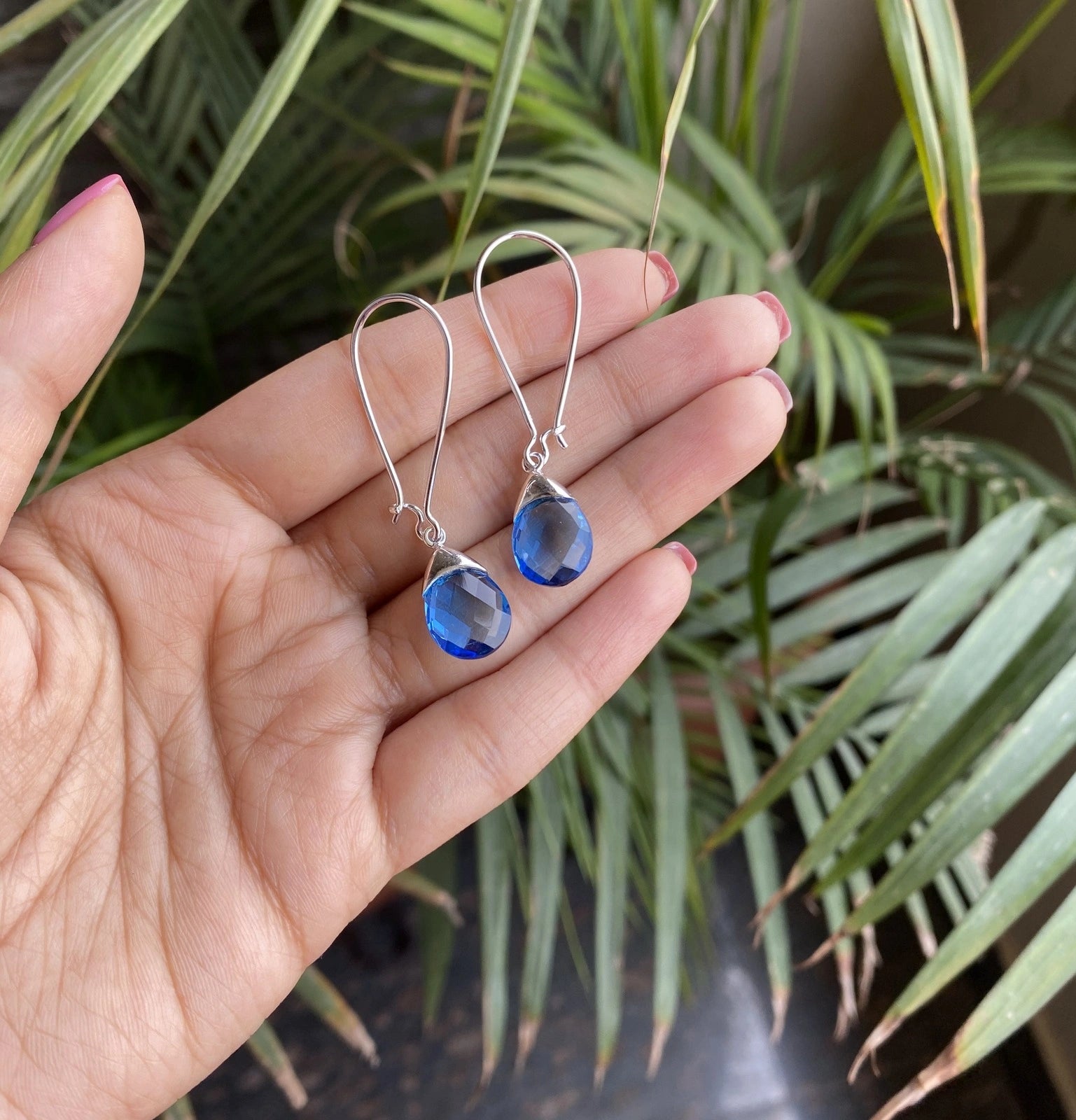 Pretty blue stone loop style earrings in pure (925) silver