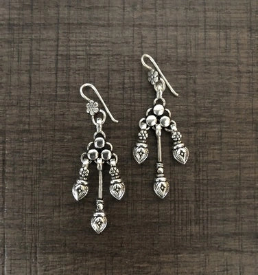 Carving work Trident pattern earrings in pure 925 silver