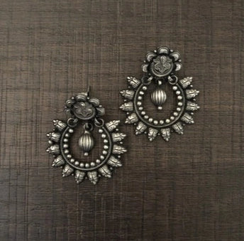 Delicate carving work chandbali style 4 cm long earrings in pure (925) silver