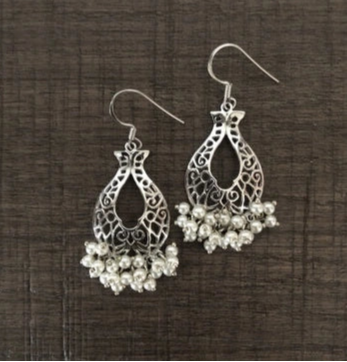 Filigree cut work earrings with shell pearl clusters in pure 925 silver