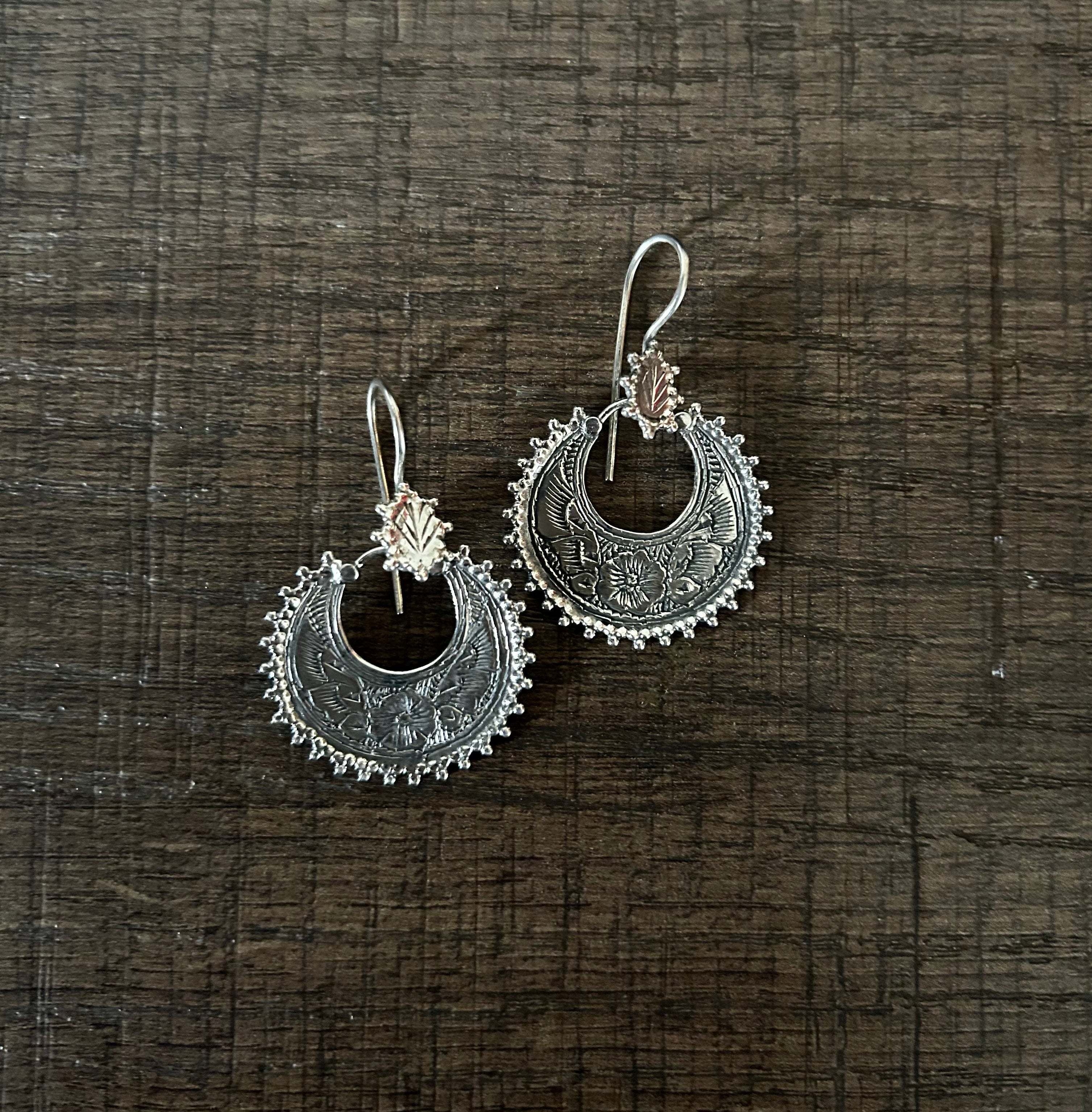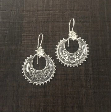 Floral engraving work hanging earrings in pure 925 silver