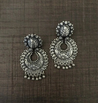 Intricate leaf border antique finish 5 cm long earrings in pure (925) silver