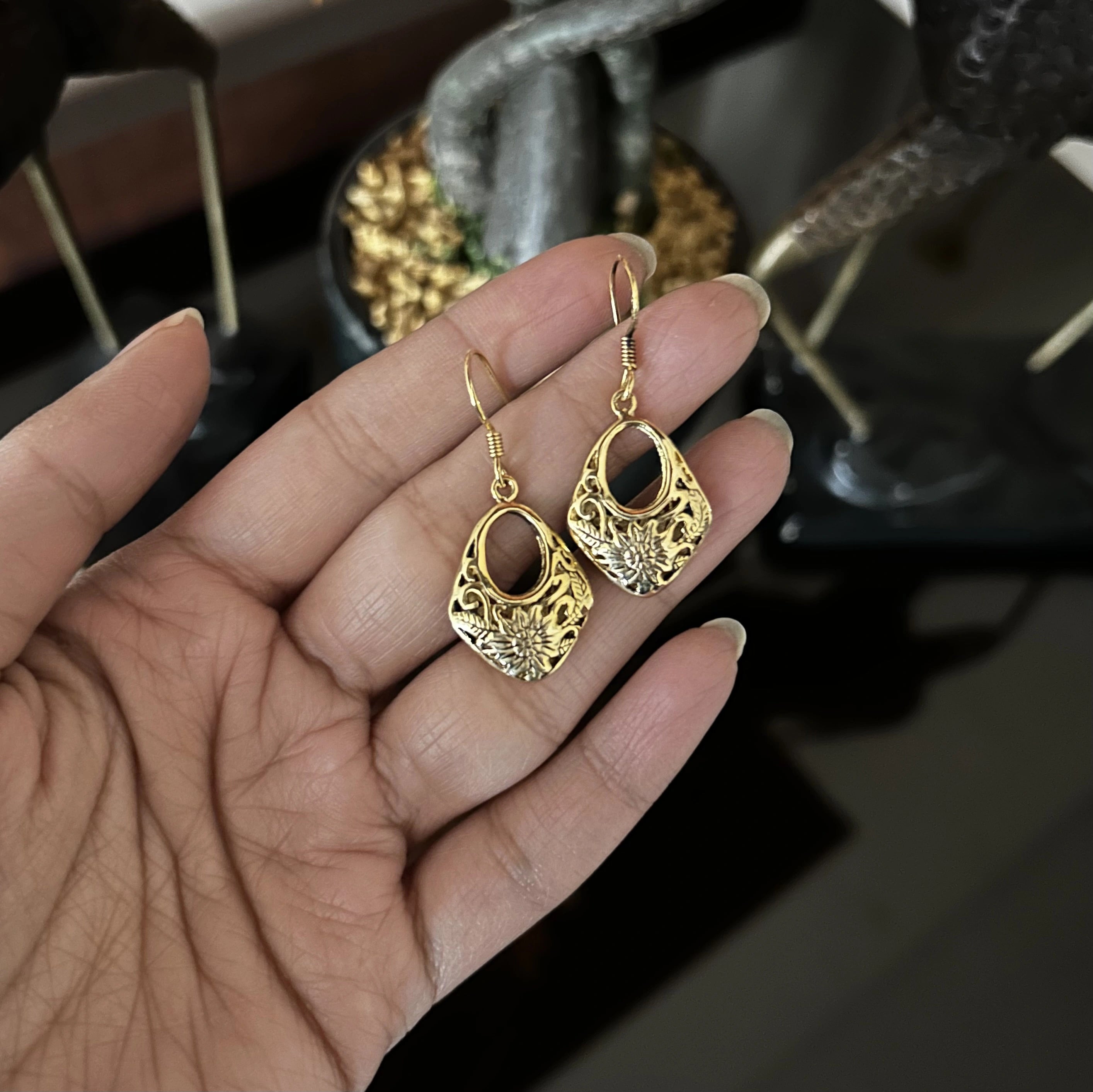 Jaali (filigree) work earrings with 22kt gold plating in pure 925 silver