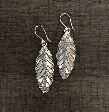 Leaf pattern engraving cut work earrings in pure 925 silver