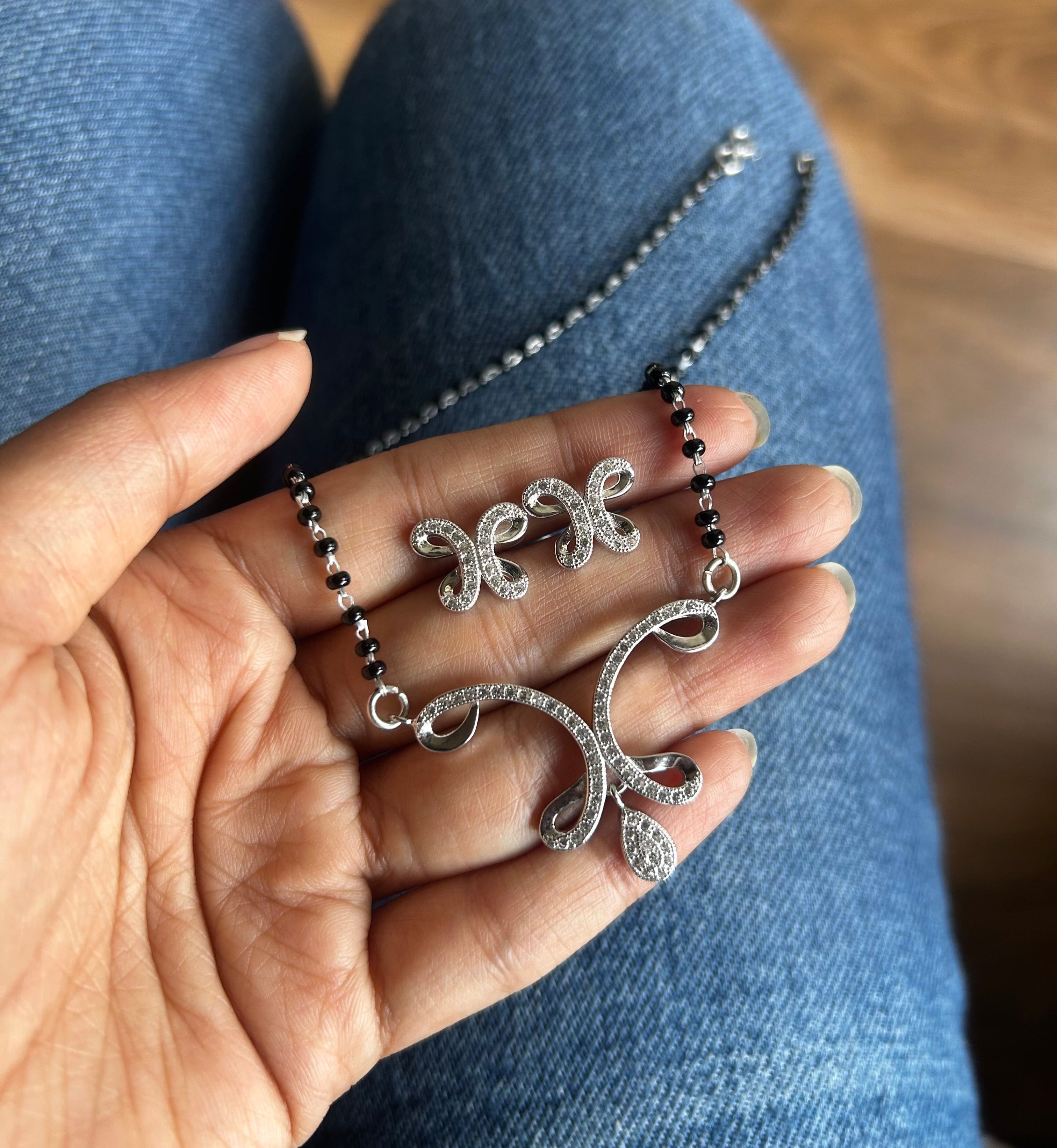 Stunning multi cz Mangalsutra Set - 2 made in pure 925 silver. It comes with an 18inch chain and matching earrings.