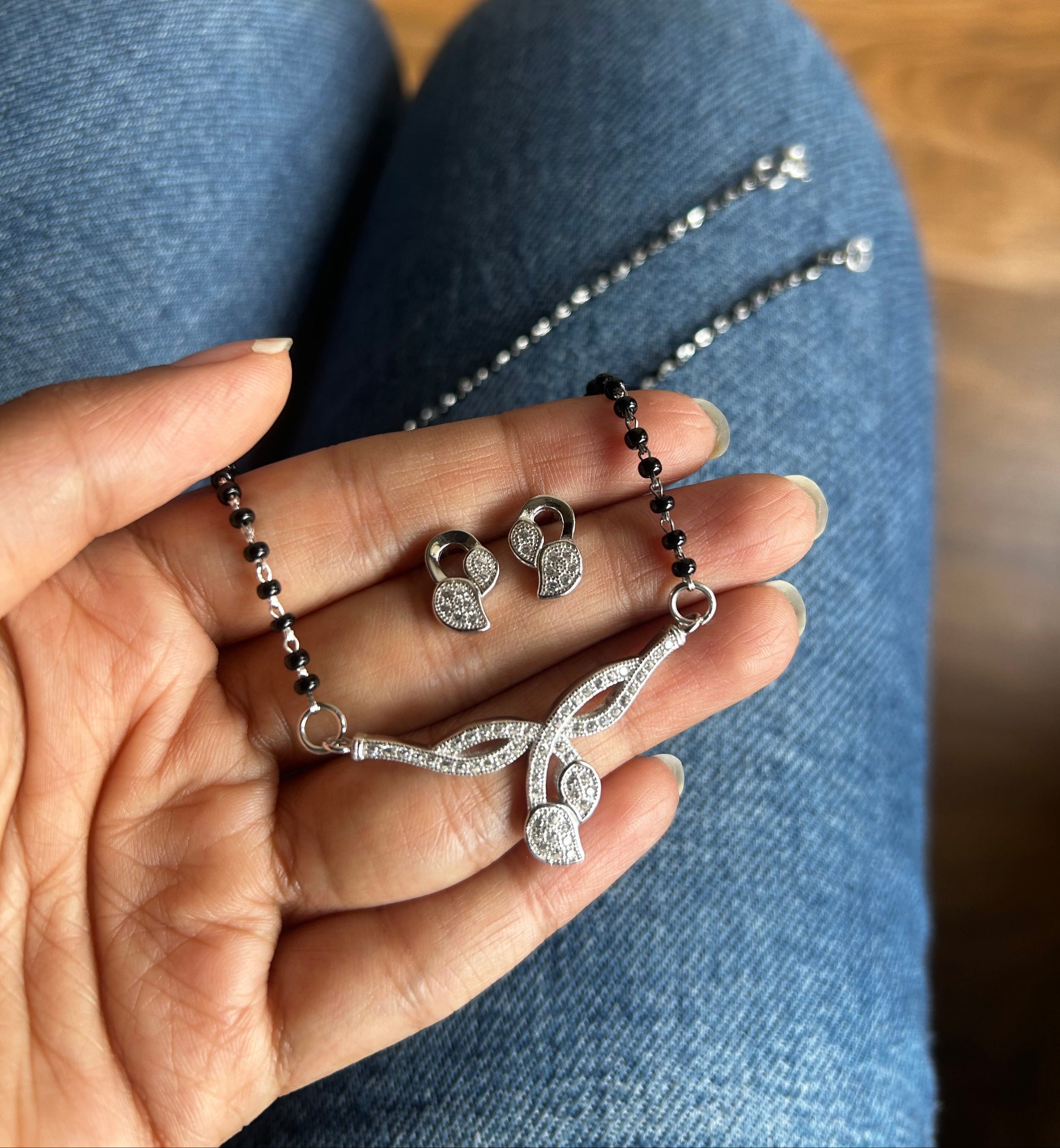 Stunning multi cz Mangalsutra Set - 3 made in pure 925 silver. It comes with an 18inch chain and matching earrings.