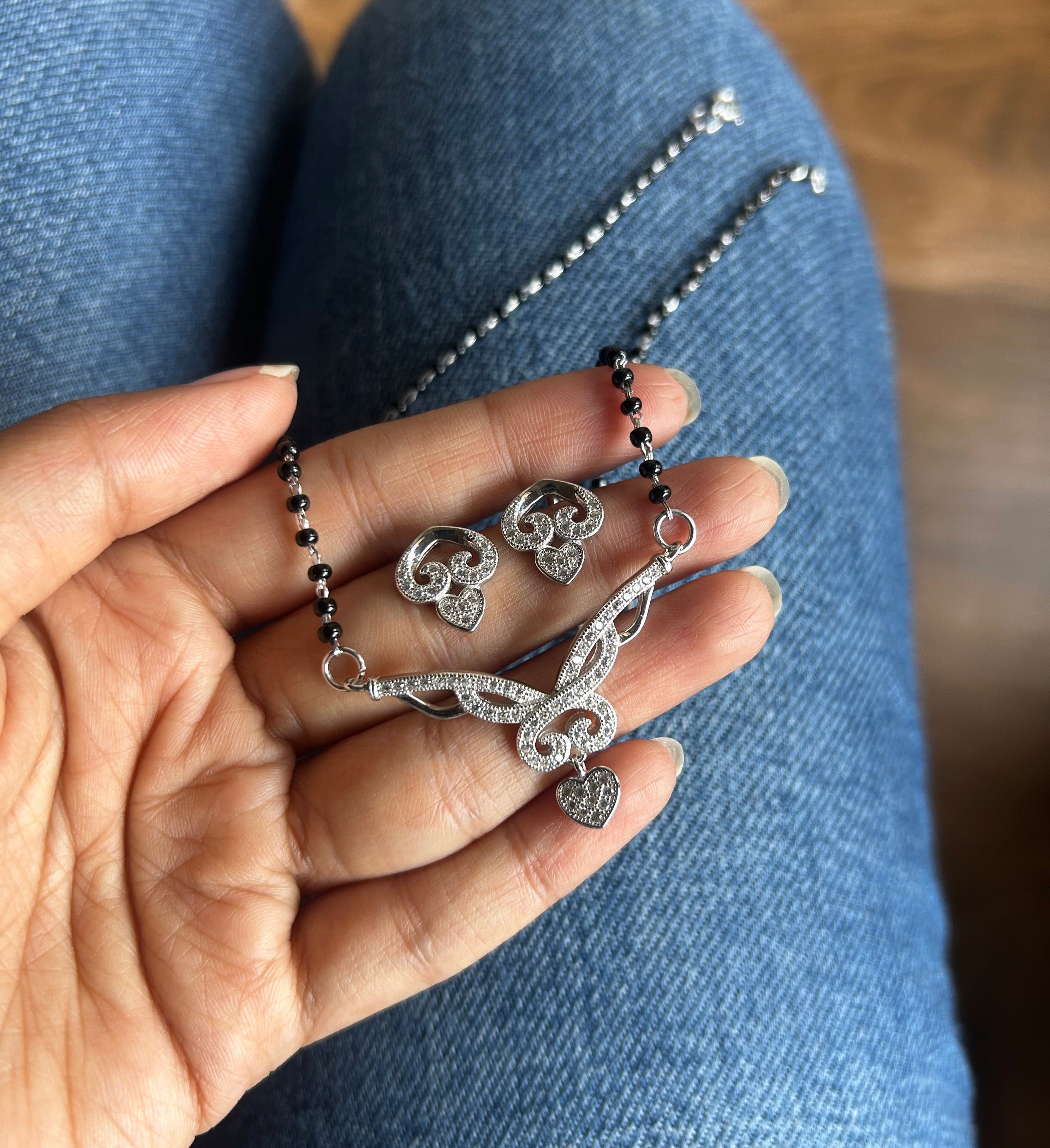 Stunning multi cz Mangalsutra Set - 4 made in pure 925 silver. It comes with an 18inch chain and matching earrings.