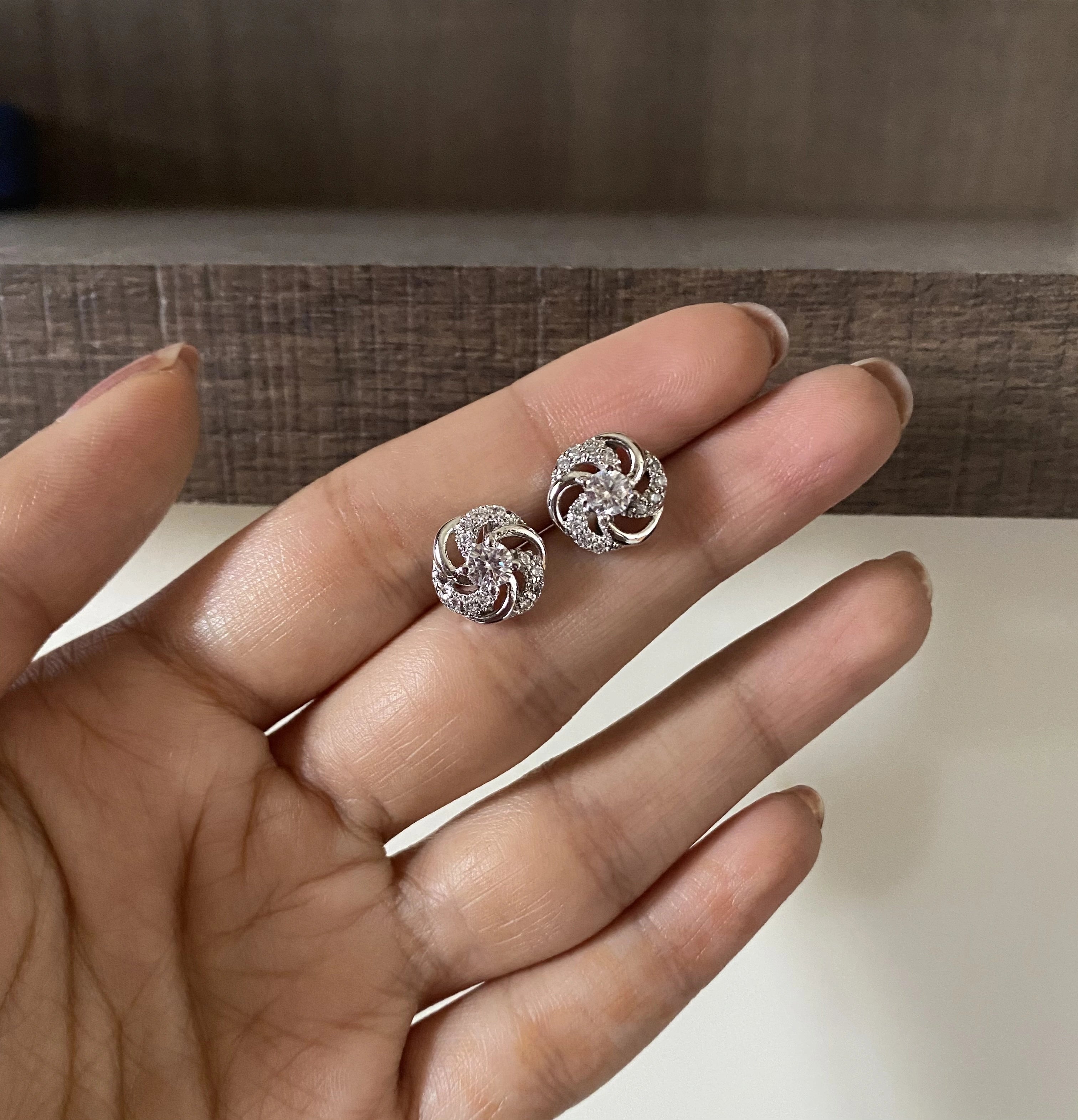Multi cz stone 1 cm diameter rotated flower pattern studs in pure 925 silver