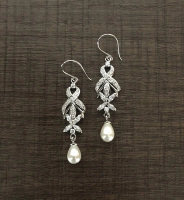 Multi cz stone danglers with pearl drops in pure 925 silver