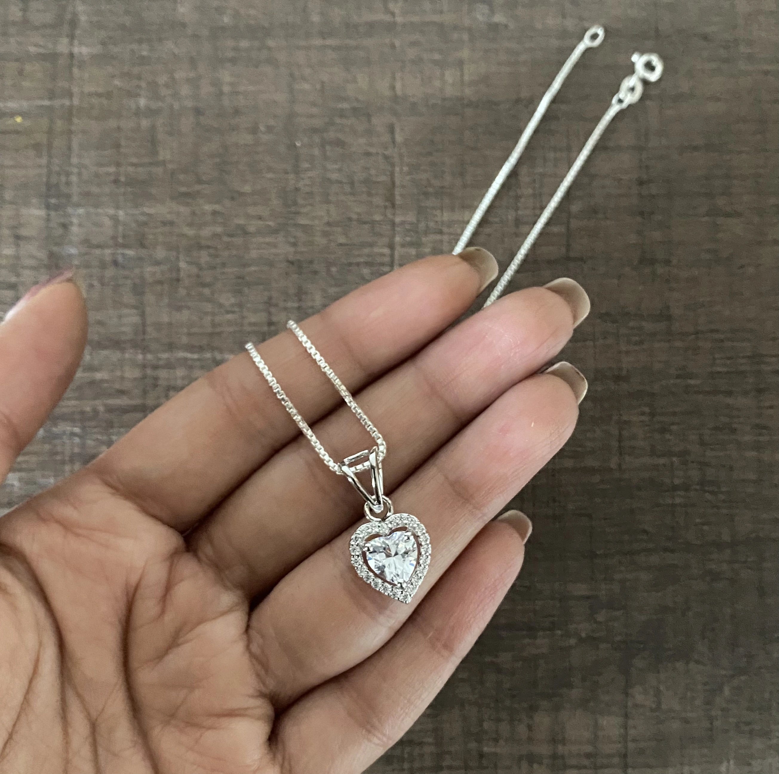 Multi cz stone diamond setting heart pendant with an 18 inch chain in pure 925 silver