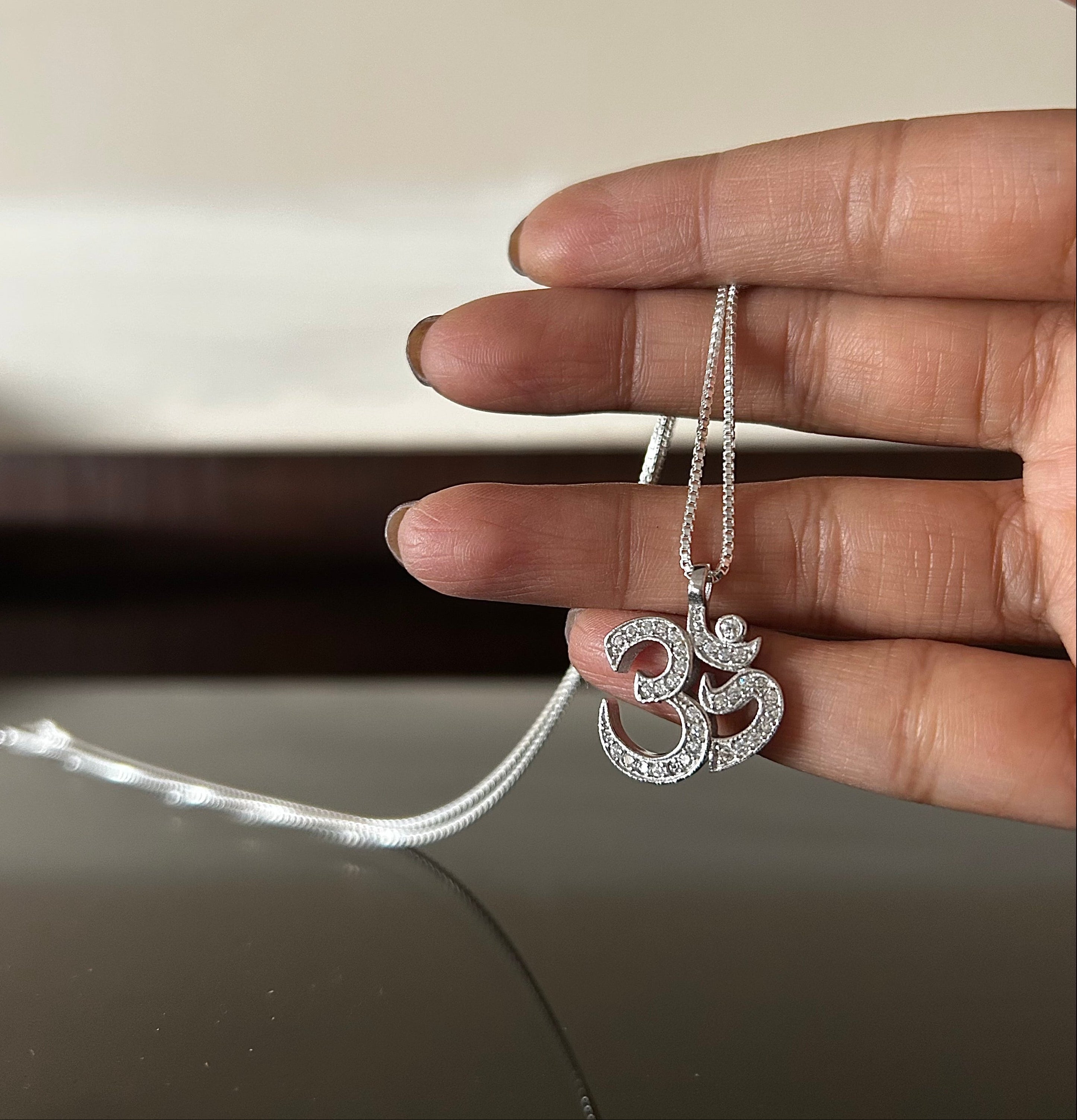 Statement Om shape multi cz micron setting pendant with an 18inch chain in pure 925 silver