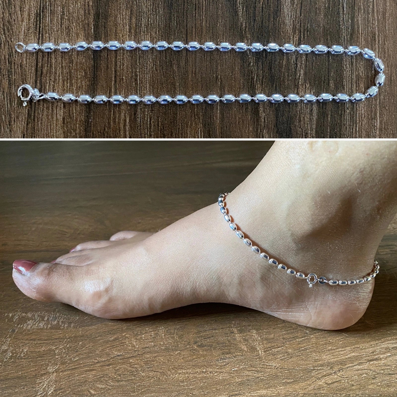 Bold & Beautiful ! Oval balls pattern anklet in pure (925) silver