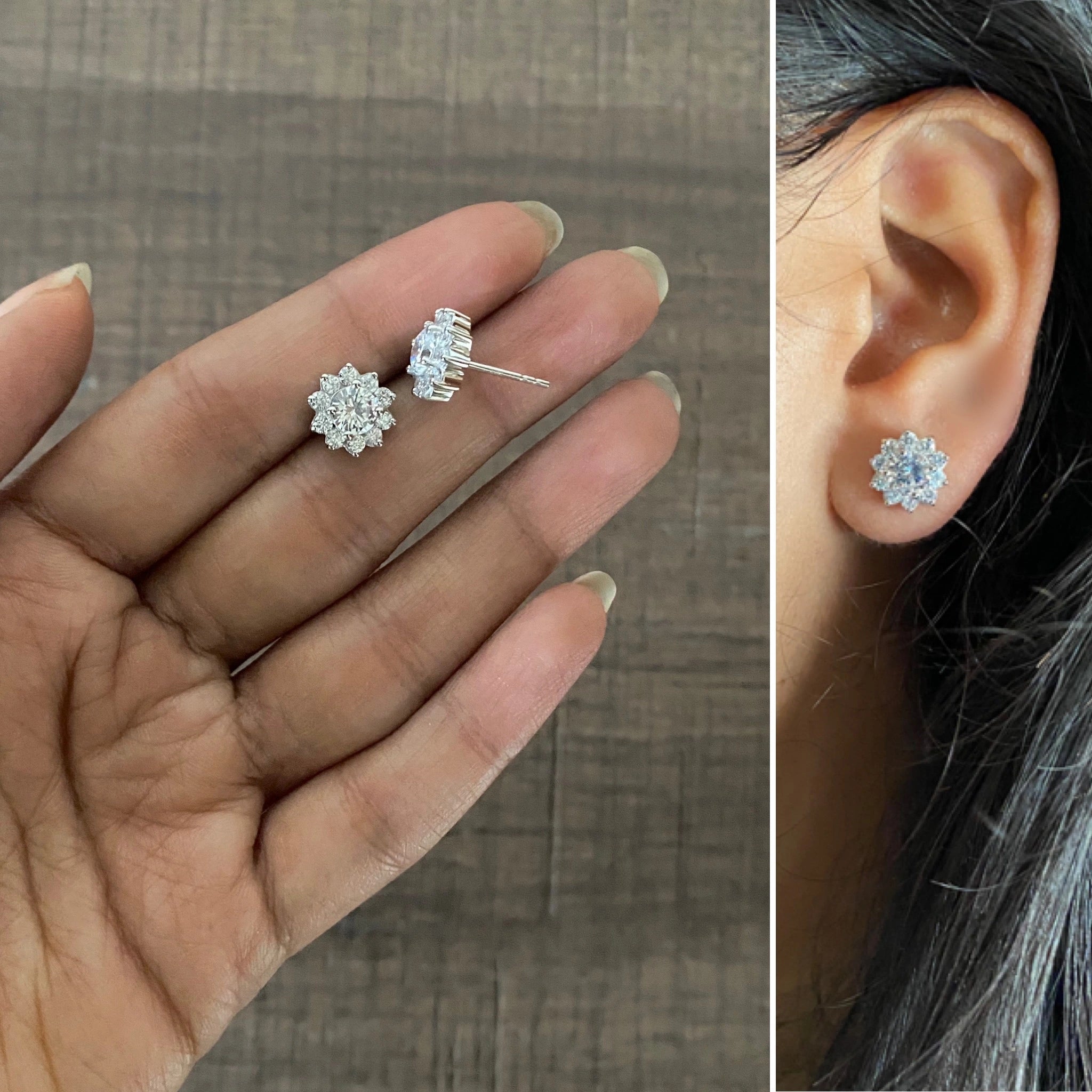 Pure 925 silver 1 cm diameter compact cz stone flower pattern studs