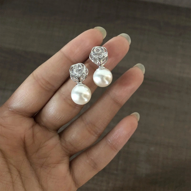 Our statement rose cut Swarovski cz stone studs with processed pearl drops in pure (925) silver