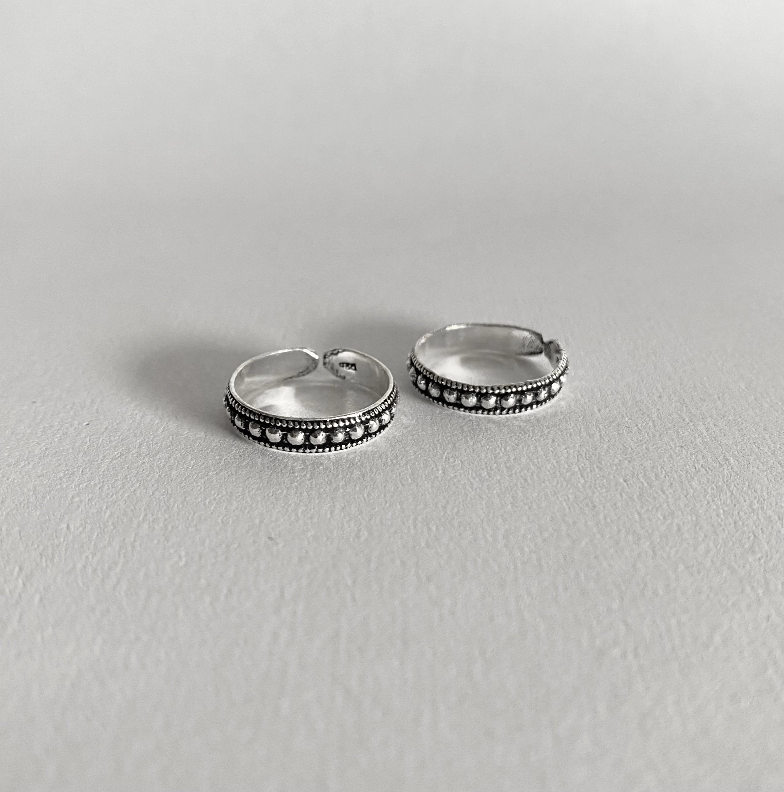 Round ball pattern rava work toe ring in pure 925 silver (one pair)