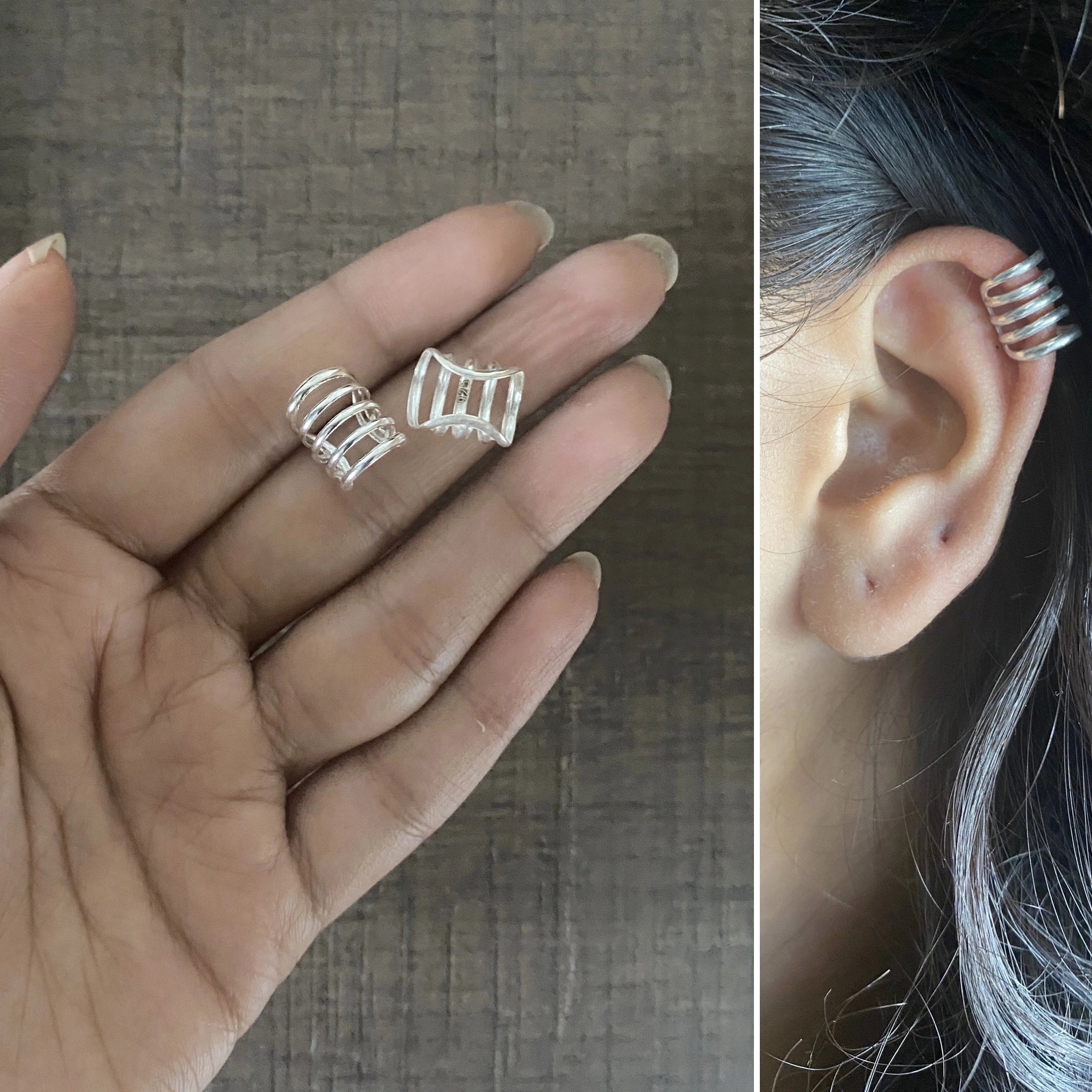 Simple five line earcuffs in pure (925) silver (one pair)
