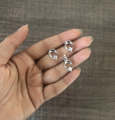 Single cz stone peacock feather pattern earrings and pendant set in pure 925 silver