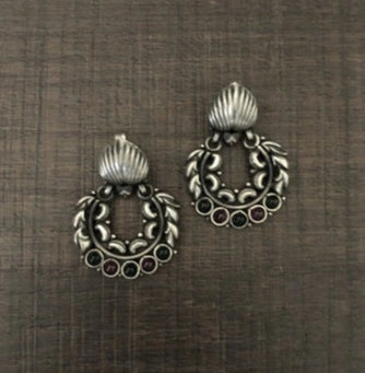 Beautiful, small antique finish kemp stone 3.7 cm long earrings in pure (925) silver