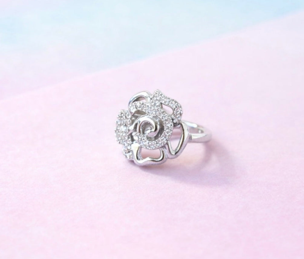 Sparkling & Studded rose pattern ring in pure 925 silver