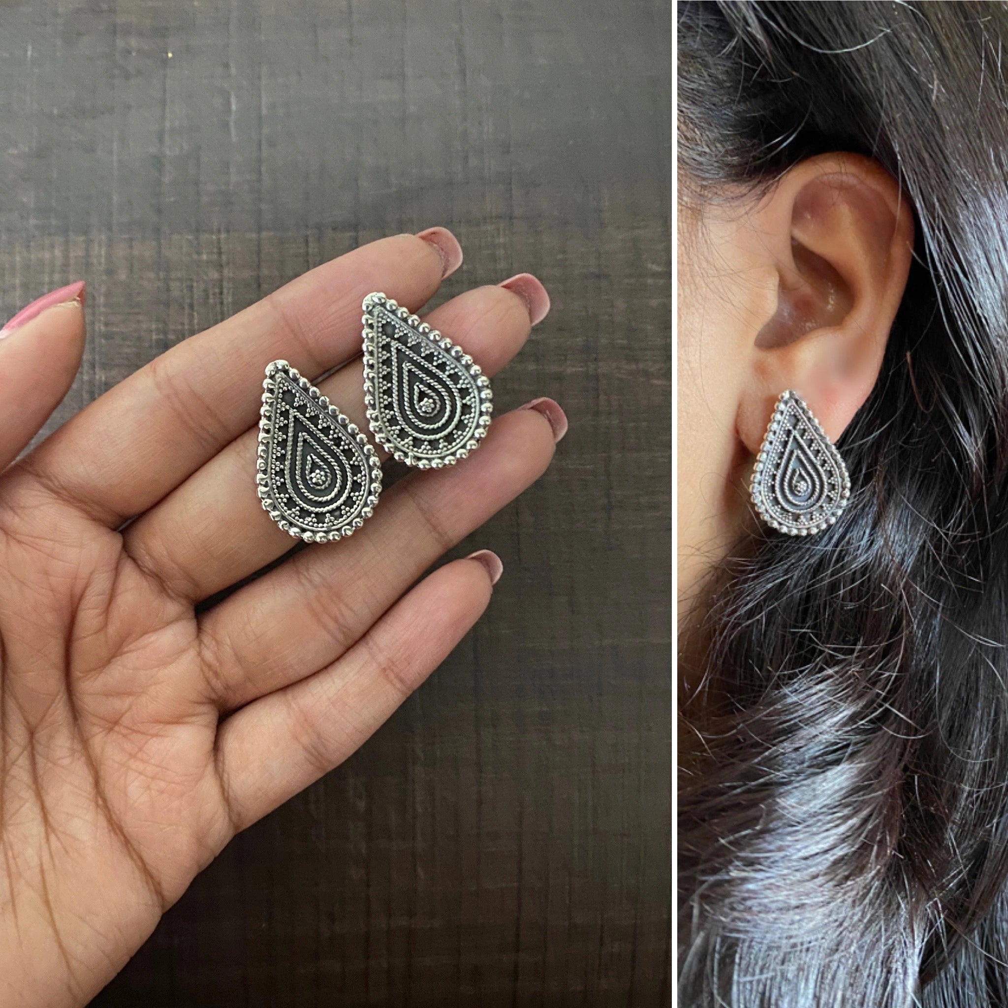 Tear drop pattern carving work and rava border antique studs in pure 925 silver