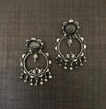Trendy antique finish kemp stone 5.5 cm long earrings in pure (925) silver