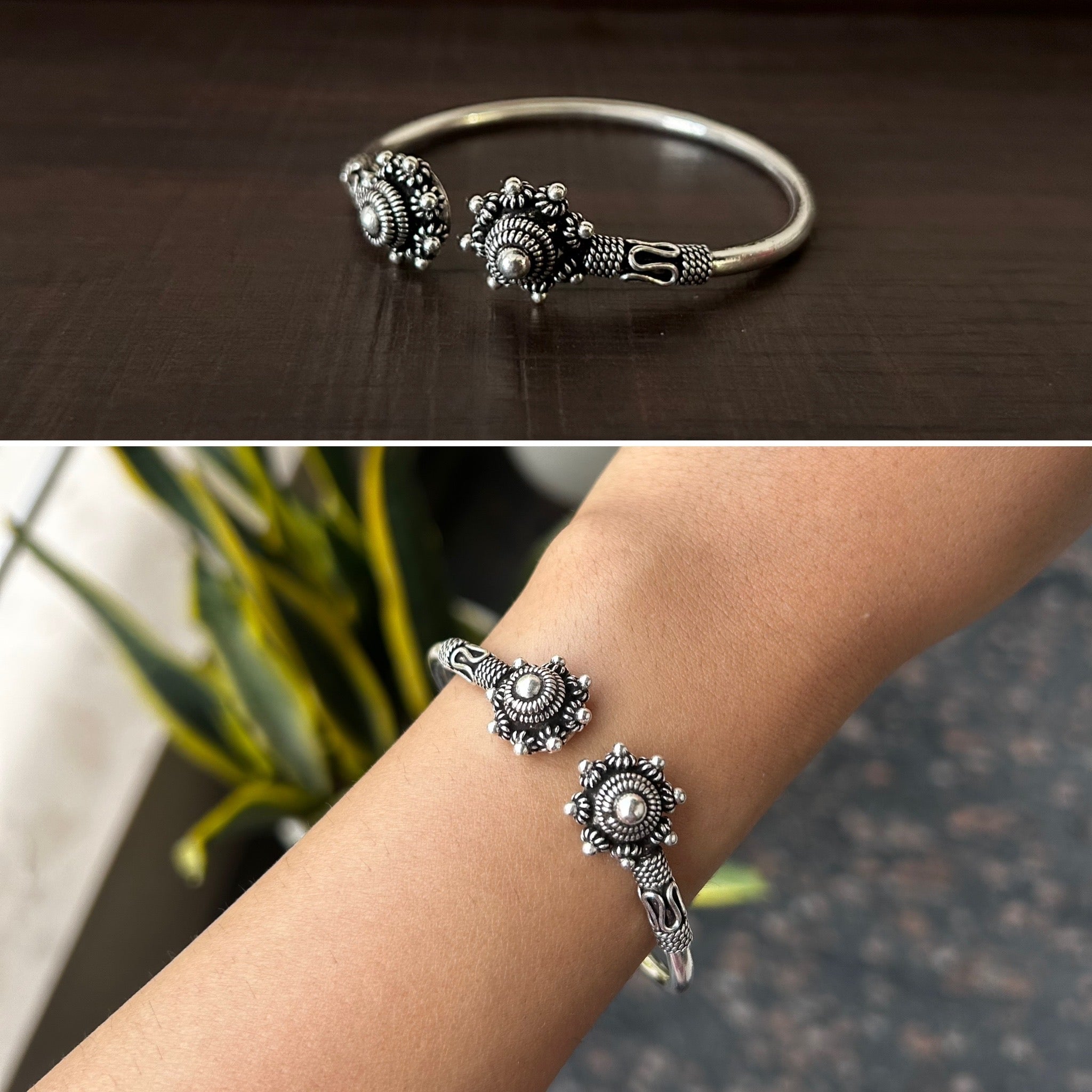 Bold & Beautiful ! Two circle ethnic carving work kada in pure 925 silver