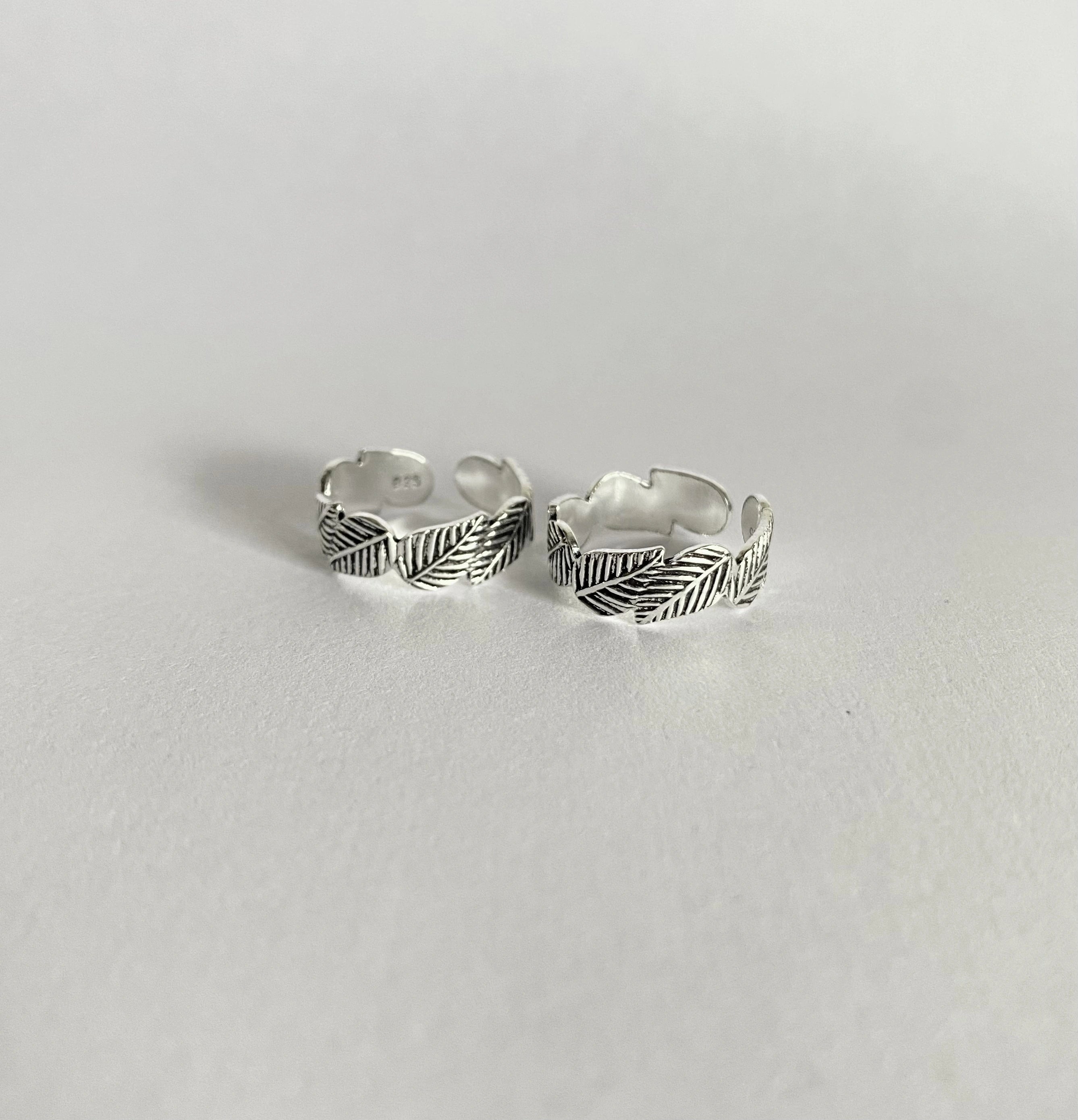 Uneven Leaf pattern toe ring in pure 925 silver (one pair)